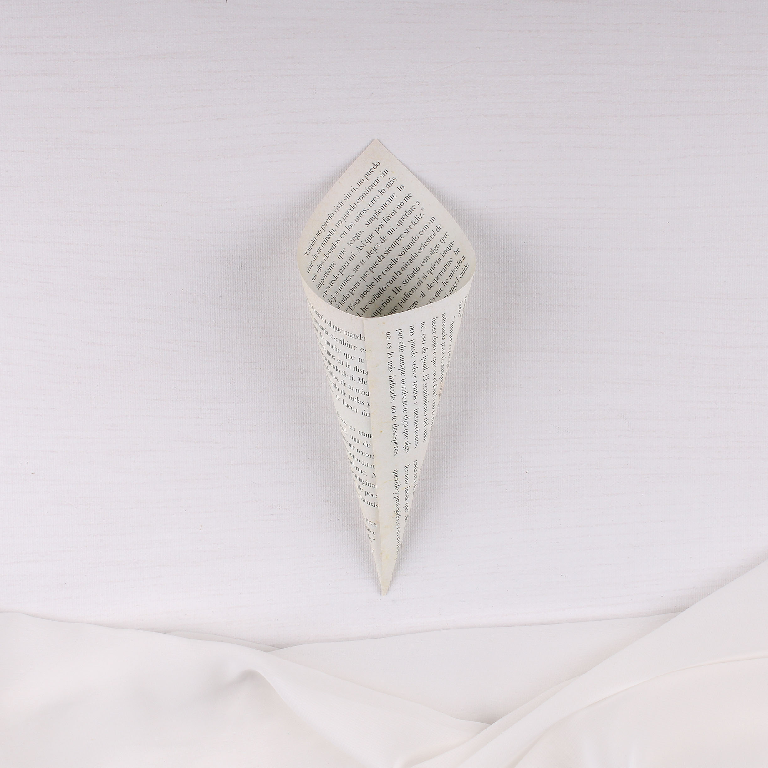 Estos conos son sencillos, sin personalización, simulan estar hechos a partir de hojas de libros.