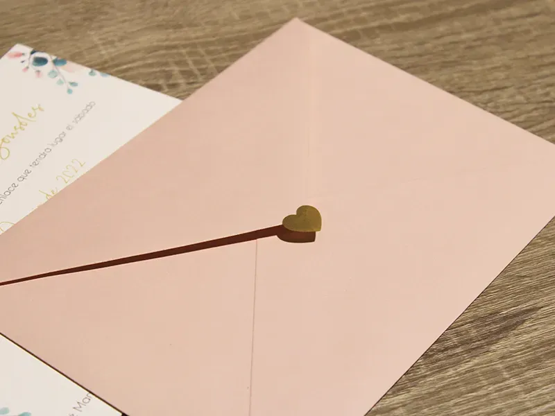 Elige un adhesivo personalizado para cerrar tus sobres con un toque de elegancia. Disponible en diferentes formas y colores para adaptarse a tu diseño.