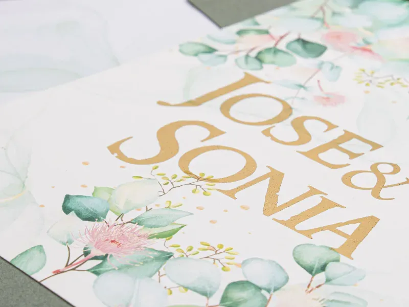 Añade un toque de lujo con estampación en foil metalizado. Disponible en dorado, plateado y otros acabados para un brillo sofisticado.